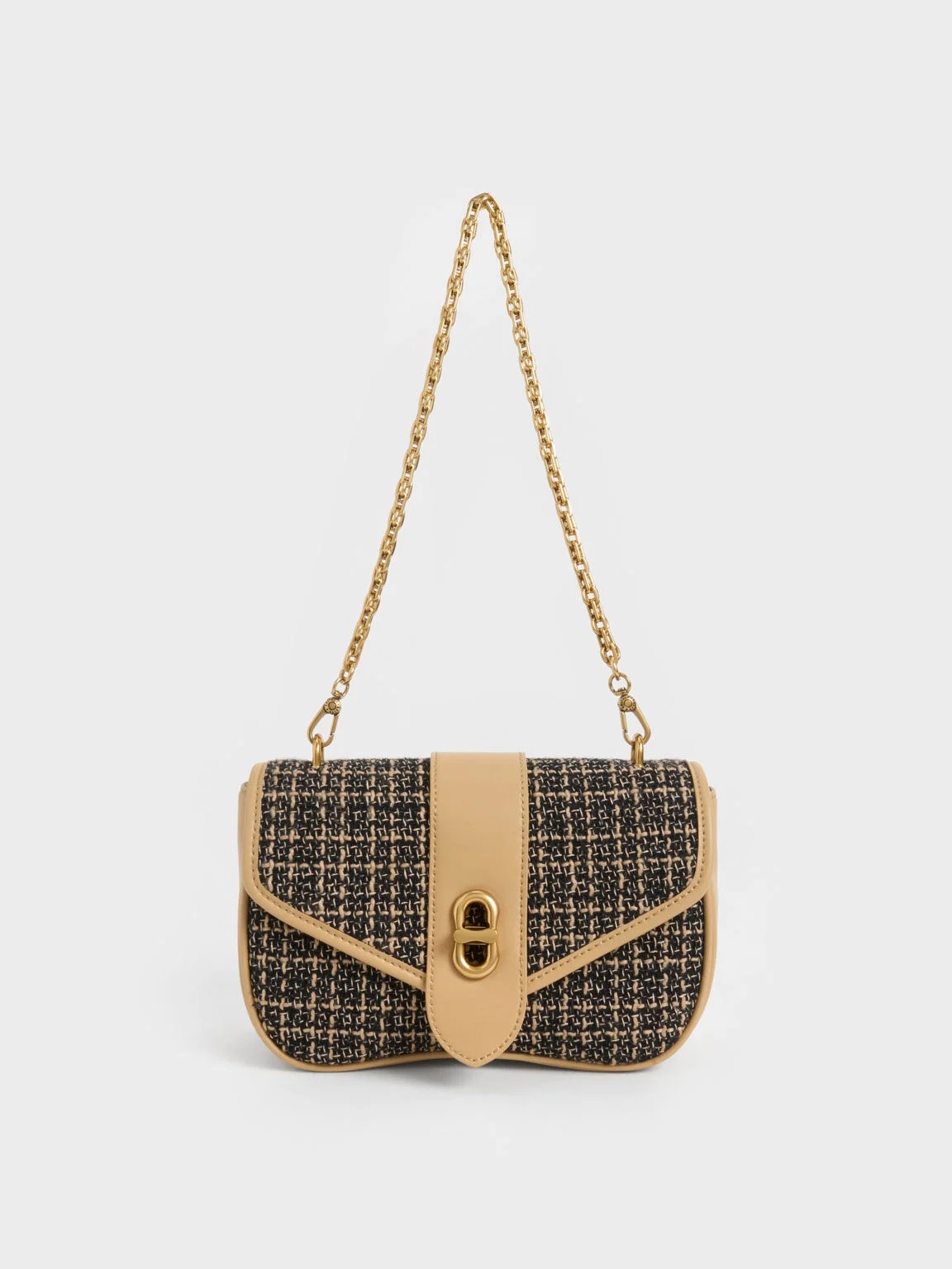 The latest iteration of our Aubrielle crossbody bag features a beautiful tactile tweed body that is complemented by understated beige edges and brassy gold-tone hardware. Plus points for the roomy interior that will easily fit your daily essentials and then some. Let this piece inject textural contrast to your casual daytime outfits.